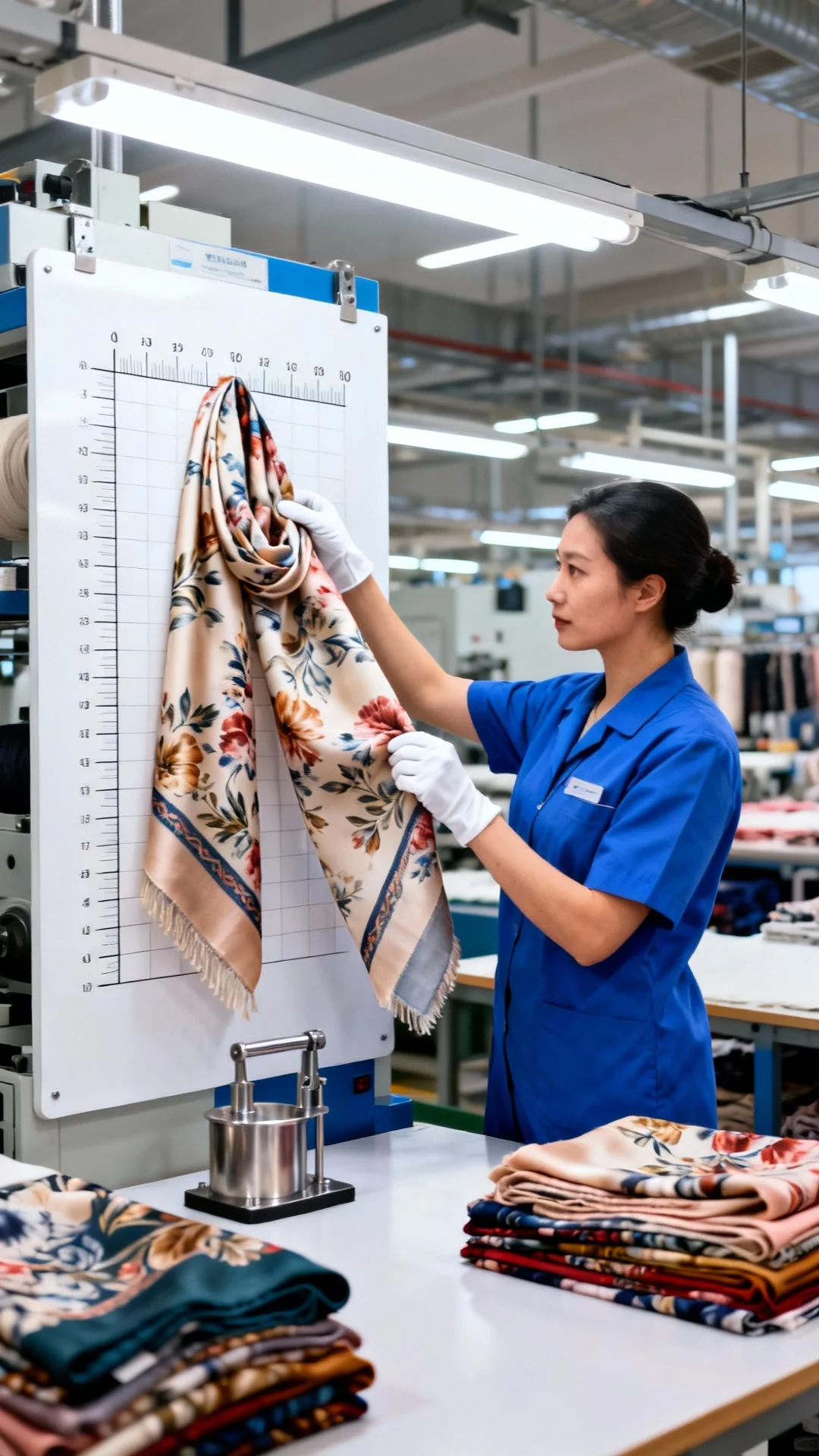 - Final inspection: Comprehensive evaluation of finished scarves against strict criteria including: