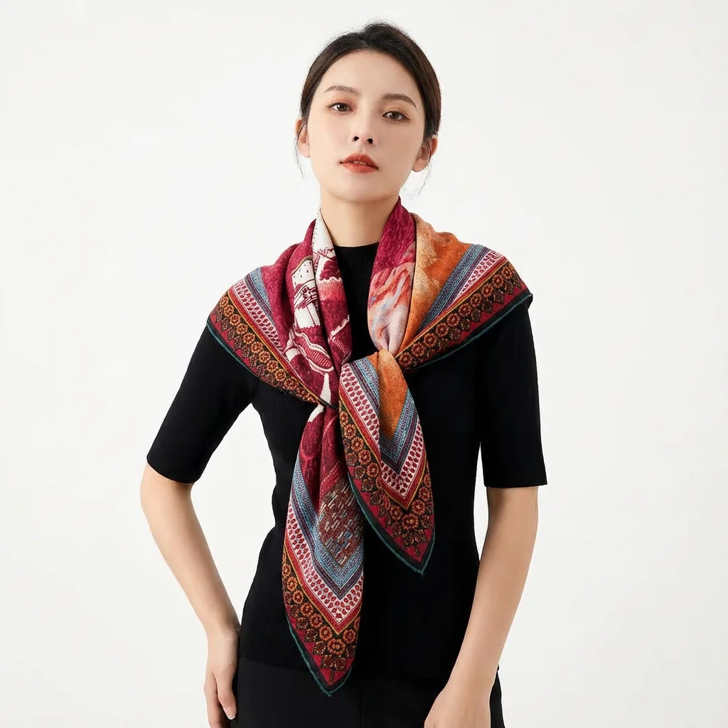 Silk and wool blend printed square scarf – Digital printing | 40+ Styles in Stock | Custom Design Supported
