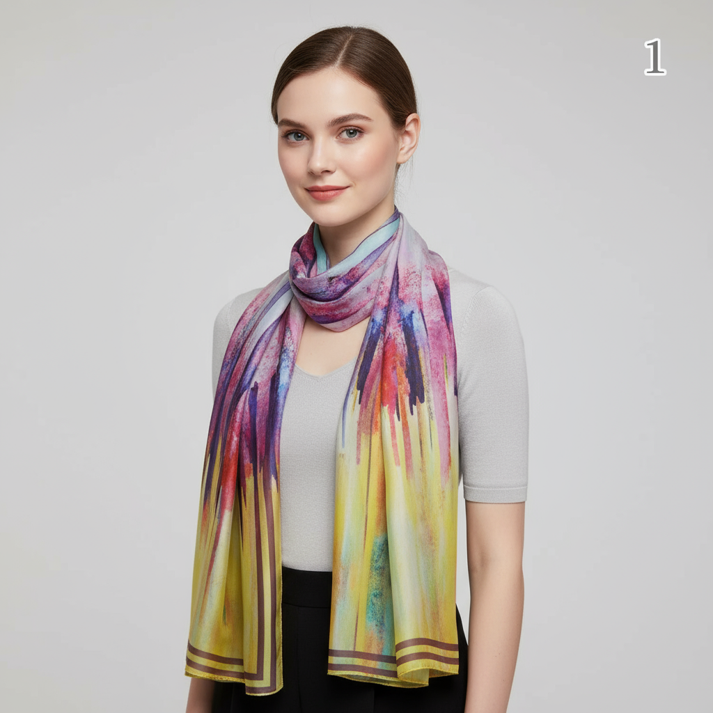 Chiffon Printed Rectangular Scarf with Natural Wrinkles – Eco-Friendly Dye Printing | 70+ Styles in Stock | Custom Designs Available