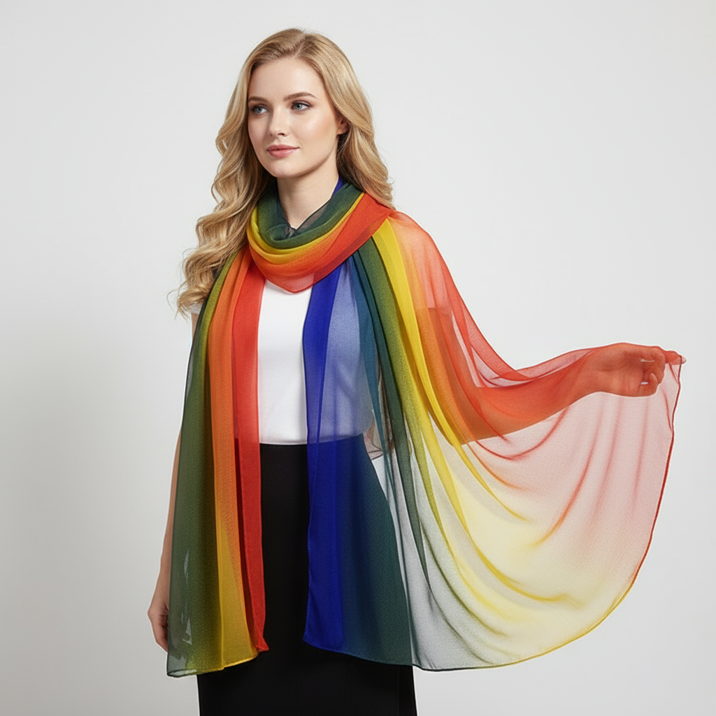 This printed georgette scarf is made from high-quality fabric, lightweight, soft, and comfortable, perfect for all seasons. Printed with eco-friendly dyes, it delivers vibrant, long-lasting colors while minimizing environmental impact.