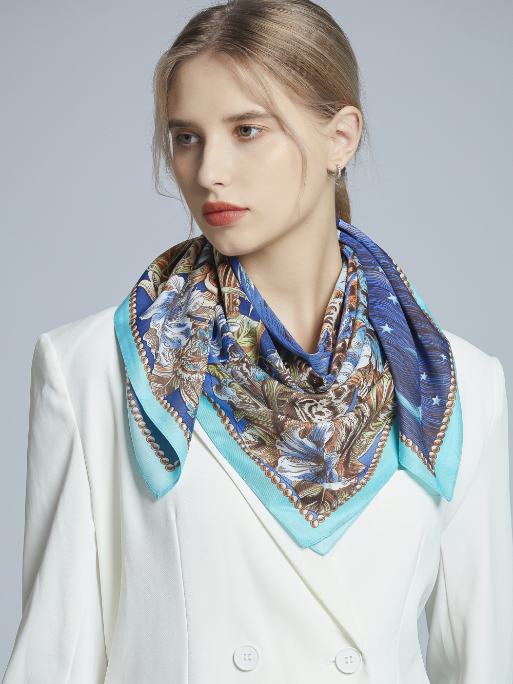 This printed square scarf is made from high-quality twill fabric. It's soft and comfortable, perfect for all seasons. Printed with eco-friendly dyes, it delivers vibrant, long-lasting colors while minimizing environmental impact.